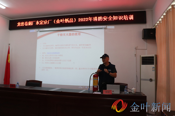 為進一步提高全體職工的消防安全知識,加強突遇火災、防洪等事故自防自救的能力,2022年6月27日下午,龍巖卷煙廠永定分廠邀請永定區消防大隊為全體在職在崗職工,在本單位四樓會議室開展消防安全知識培訓、生產車間逃生演練、廠區物流大坪實際滅火演練。