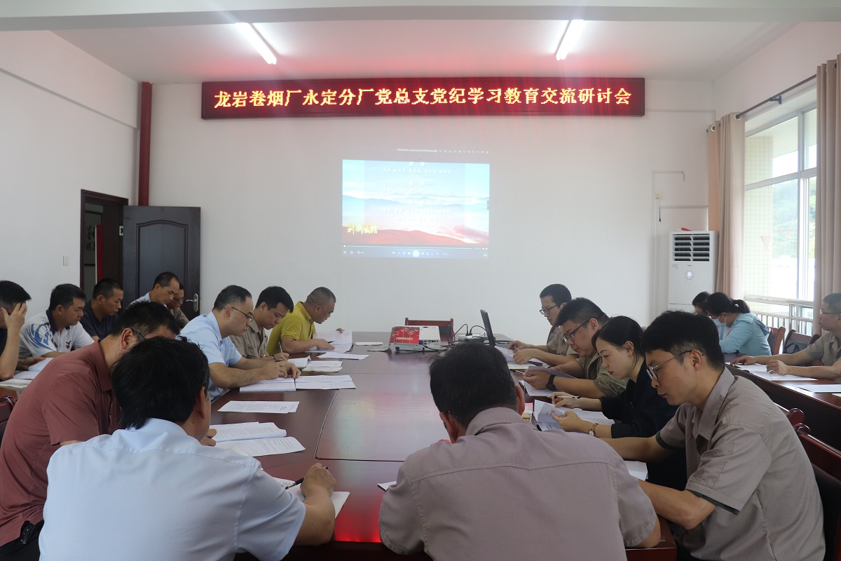 5月24日下午,龍巖卷煙廠永定分廠黨總支召開黨紀學習教育集中學習暨交流研討會,會議傳達學習習近平總書記關于黨紀學習教育的重要講話和重要指示精神,學習新修訂的《中國共產黨紀律處分條例》,部分與會同志圍繞黨紀學習教育,結合自身工作實際進行研討交流。